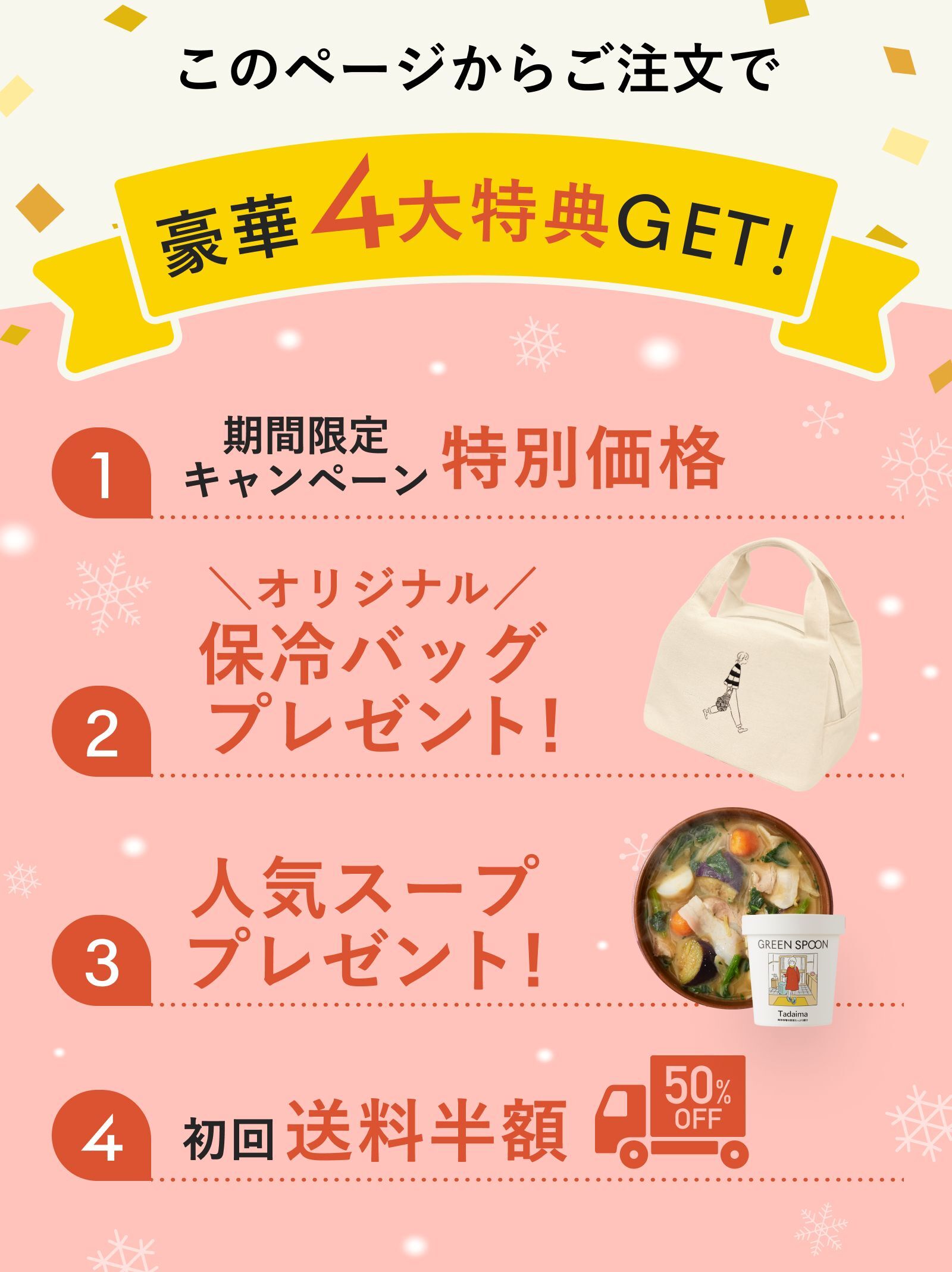 『オリジナル保冷バッグ』と『人気スープ』付きは、とってもお得!